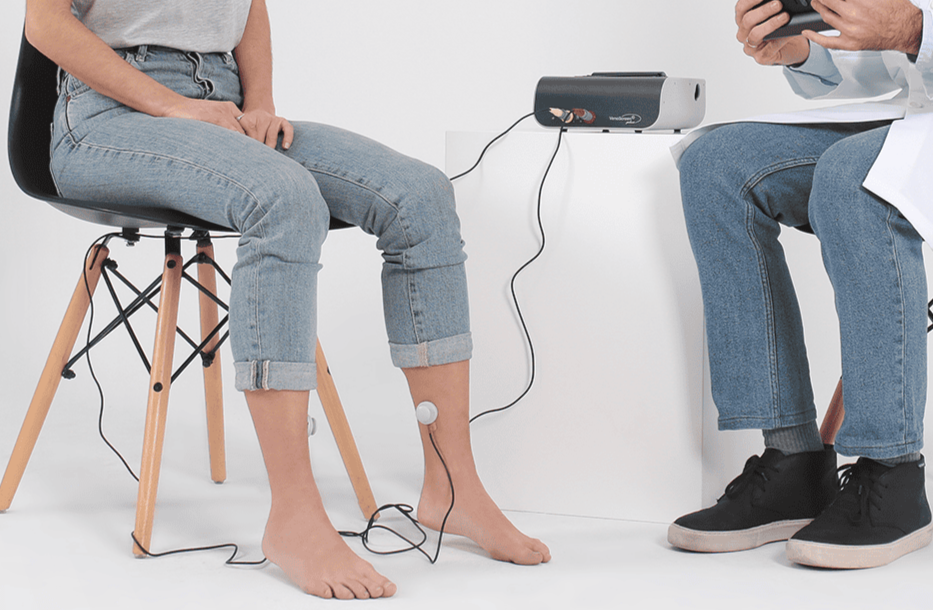 Utilizamos un método no invasivo que registra cambios locales de volumen de sangre en los tejidos. Con el dispositivo, el VenoScreen Plus, que emplea fotopletismografía con reografía por reflexión de la luz (PPG / LRR), mostrando resultados precisos y confiables. Se colocan unos electrodos en tus piernas, desde la rodilla hacia abajo. En menos de 10 minutos, conoceremos información sobre el estado de tu circulación, de forma totalmente indolora y sin molestias.